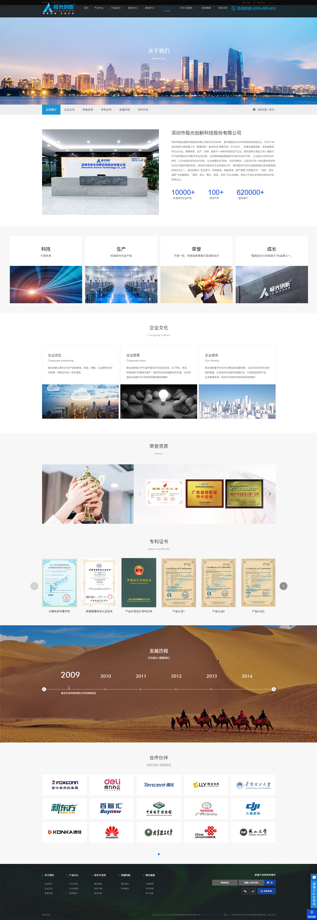 深圳市極光創(chuàng)新科技股份有限公司成立于2009年,是中國(guó)首批3D打印機(jī)研發(fā)及制造企業(yè),于2017年成功在新三板掛牌上市(股票簡(jiǎn)稱:極光科技 股票代碼:871953),并通過(guò)國(guó)家高新、深圳高新技術(shù)企業(yè)認(rèn)證,是集研發(fā)、生產(chǎn)、營(yíng)銷、服務(wù)于一體的科技型生產(chǎn)企業(yè)。