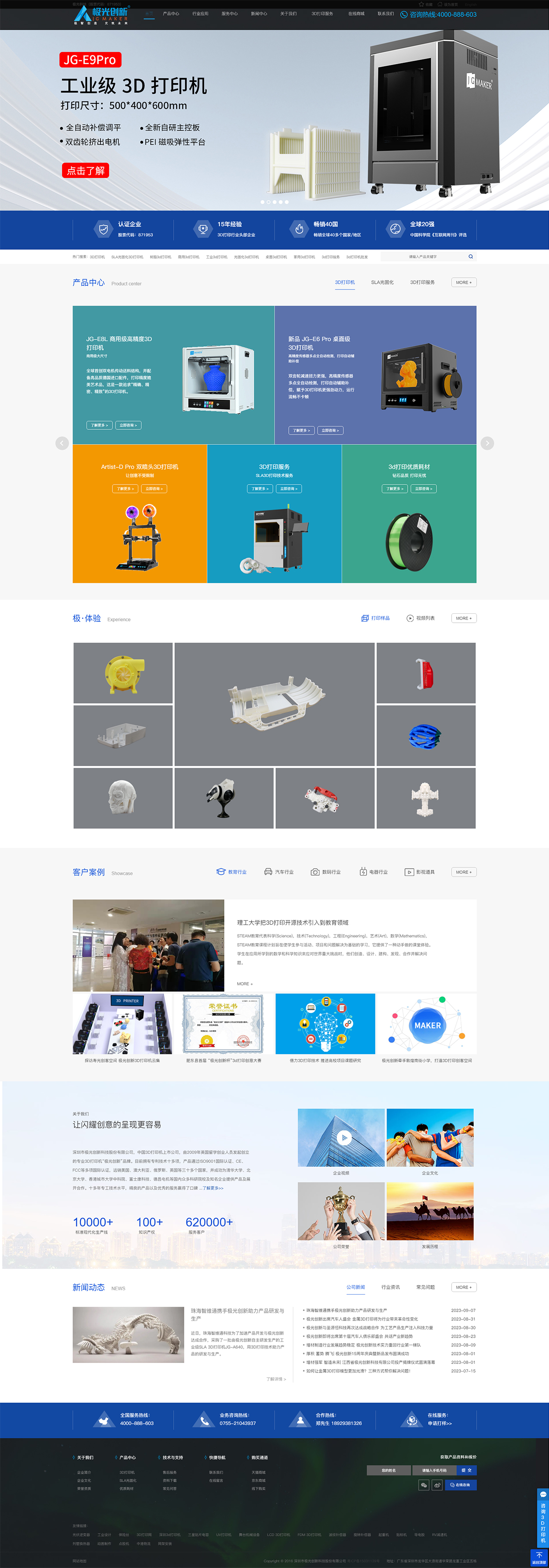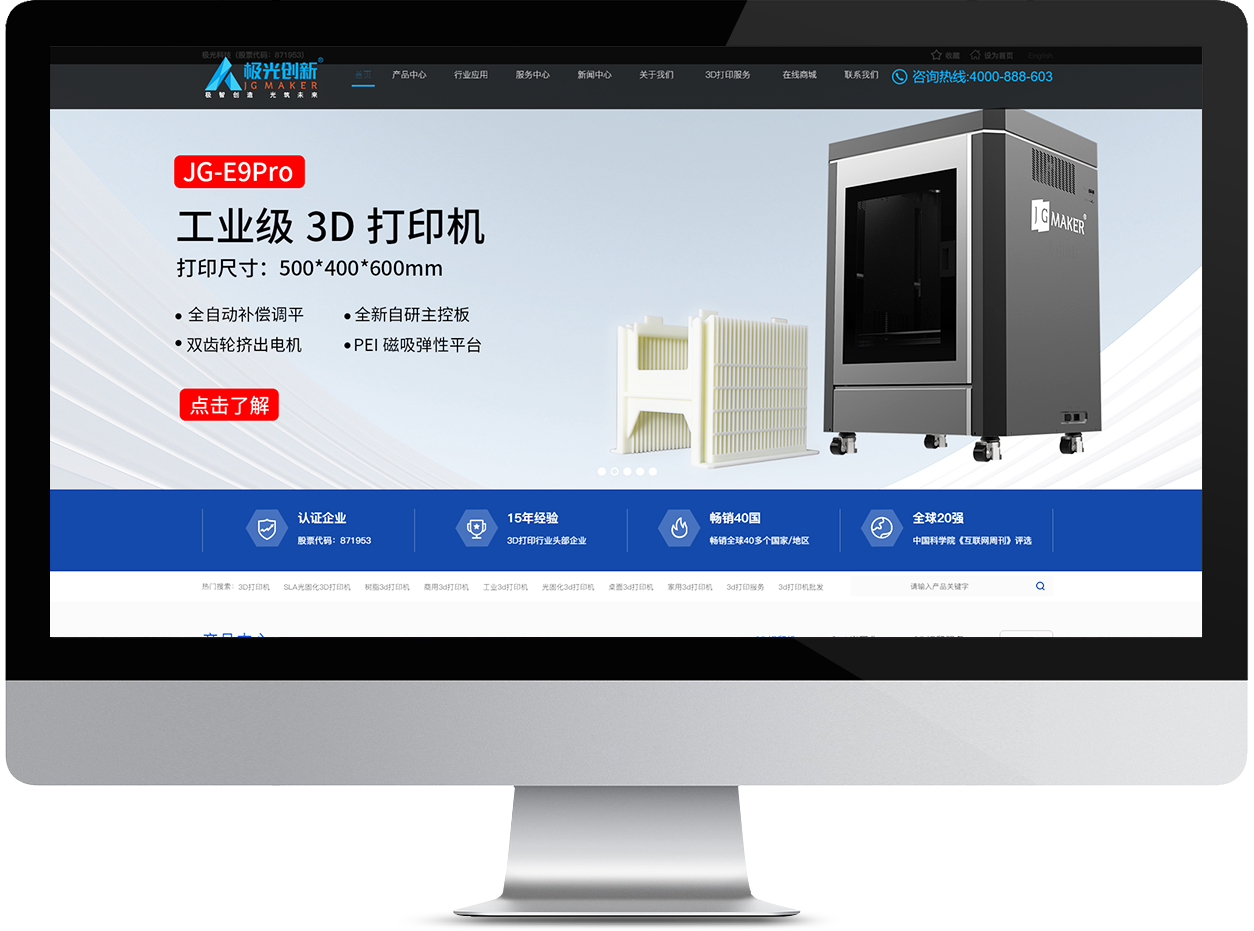 深圳市極光創(chuàng)新科技股份有限公司成立于2009年,是中國(guó)首批3D打印機(jī)研發(fā)及制造企業(yè),于2017年成功在新三板掛牌上市(股票簡(jiǎn)稱:極光科技 股票代碼:871953),并通過(guò)國(guó)家高新、深圳高新技術(shù)企業(yè)認(rèn)證,是集研發(fā)、生產(chǎn)、營(yíng)銷、服務(wù)于一體的科技型生產(chǎn)企業(yè)。